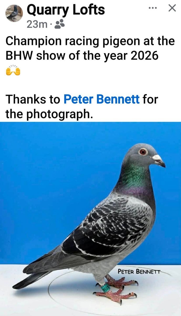 7. What a Blackpool show 🎉🎉🙌🙌. CHAMPION RACING PIGEON 2026 BHW SHOW OF THE YEAR Reserve Supreme Champion 2026 UK BHW SHOW OF THE YEAR 1st 5th 6th Young hens 100 miles 2nd,3rd 5th 7th old hens 200 miles 10th young cocks 100 miles Thanks very much to law and Brady who bred my Champion racing pigeon 🎉🎉🎉 Racing pigeons in racing classes. Roll on next year 🎉🙌🎉🙌🎉🫡🫡