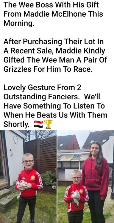 8. Copied from Facebook 20th March 2026 Said goodbye to another pigeon racing legend today George Harris of dunipace.George won the SNFC frome race in Scotland’s fastest ever national race,he had a great send off today and his daughter had the congregation in stitches with tales of her father!! The excellent picture on the order of service is of geo and his good red cock which won handsomely from Rennes and story has it George spent the winnings on a sports car!! RIP George.