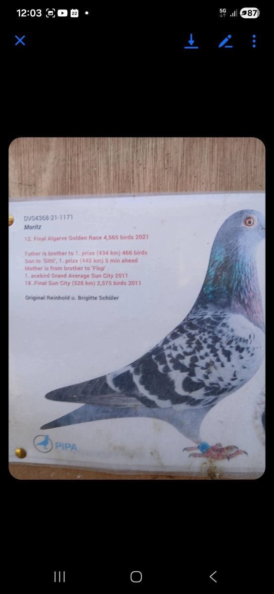 Having previously lived in London, Philip moved to Annan following his marriage and influenced by friends and work colleagues he decided to enter the Fancy assembling a modest team of pigeons that were gifted to him by several local fanciers including Billy Dalrymple, with whom he formed a close friendship. In the early days a young Pied hen entered the loft, which he reported and was allowed to keep. It was bred by Peter Virtue from Cockburnspath and contained the lines of SURP62E7236 on the Damās side, which was a noted stock bird in Peterās loft and a Kirkpatrick cock from John Jackson from Longtown on the Sireās side that contained the lines of ā443ā and āSolway Kingā. This hen developed into an absolute beauty and when Philip entered her in a local Show that was judged by Tom Little from Creca it not only won its Class but following the Show Tom spoke to Philip and told him he was so impressed with it he should ānail it to the floorā. This hen proved to be a superb breeder producing a number of really good pigeons, including a cock that was 1st South Section 21st Open Avranches.