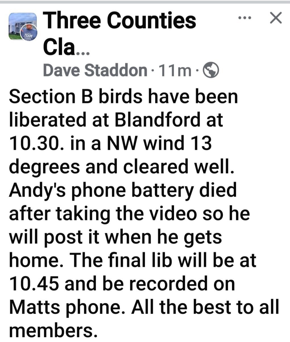 Widnes Fed 18.4.26 R2 Hereford Liberated st 9.45 in a light West North West best of luck everyone 🍀🍀Big Thanks to Phil and Callum doing a brilliant job much appreciated 👏👏